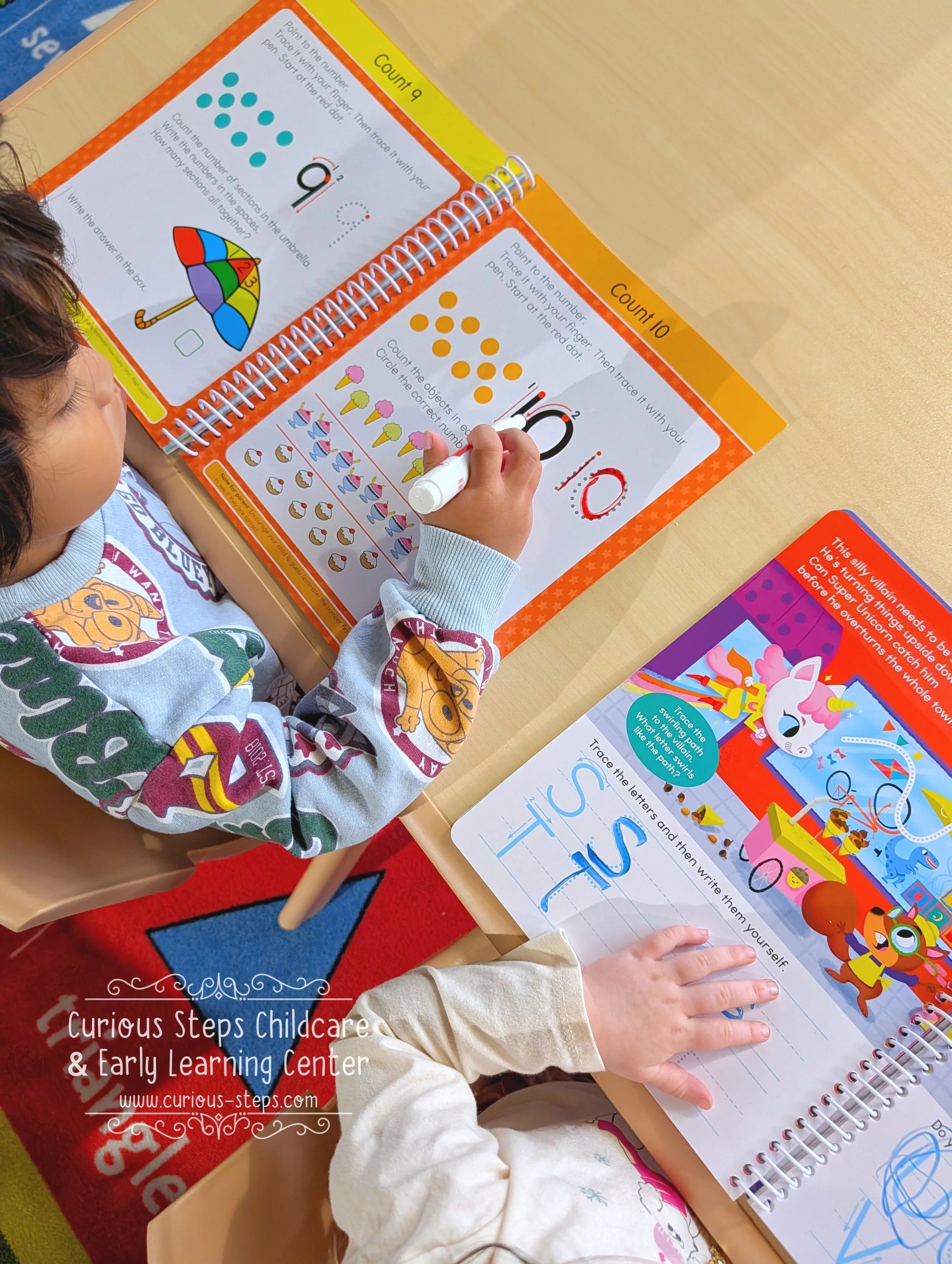 Children are immersed in both English and Spanish throughout daily routines, activities and transitions. Dual language exposure supports cognitive development, cultural awareness, early literacy and handwriting development while strengthening communication and school readiness skills.