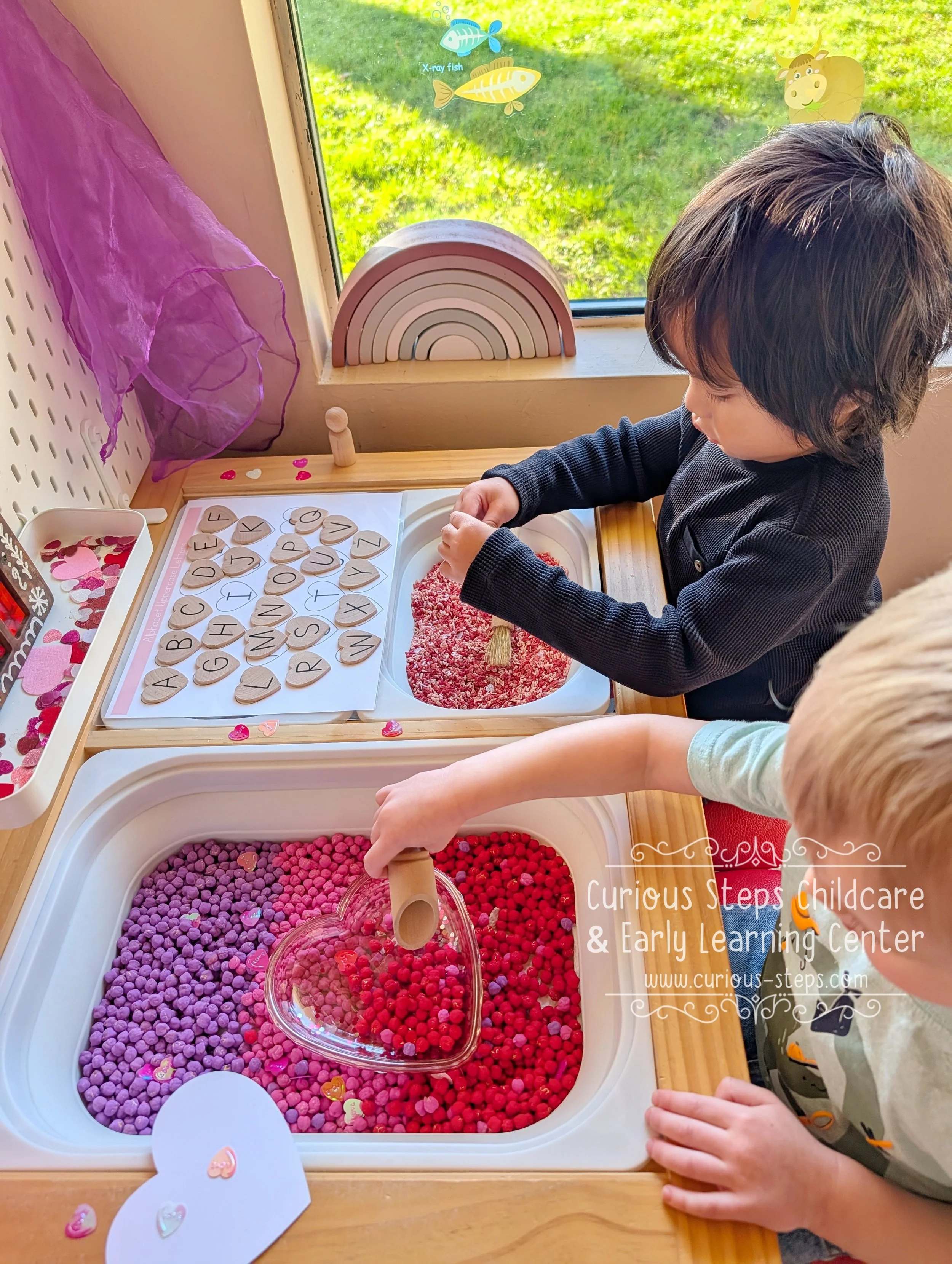 Sensory play is an important part of our program. Through hands-on exploration of textures, colors and materials, children strengthen fine motor skills, support brain development and build focus, creativity and problem solving skills in a calm and engaging environment.